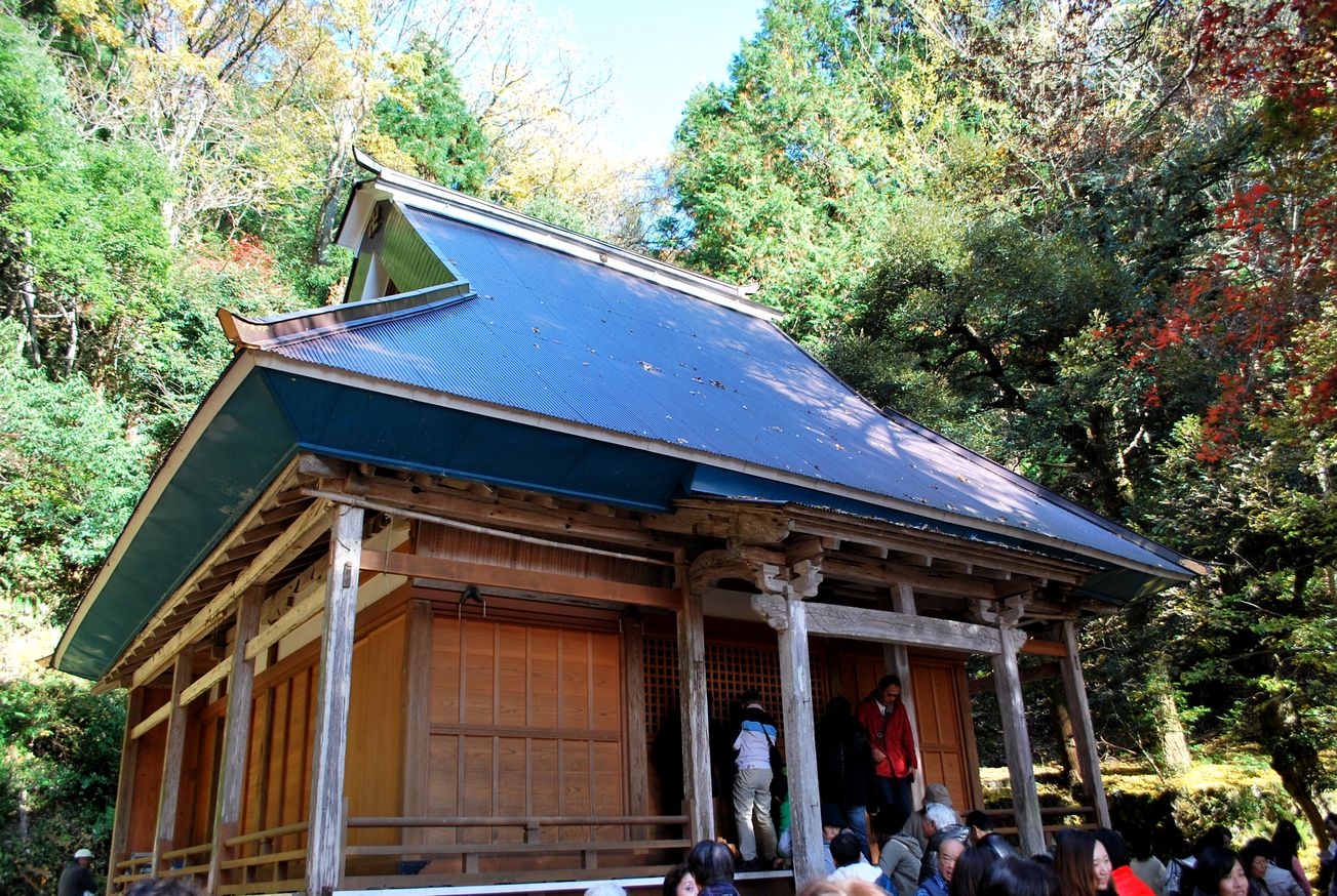 | 背景は鶏足寺のもみじ落ち葉の名所 |