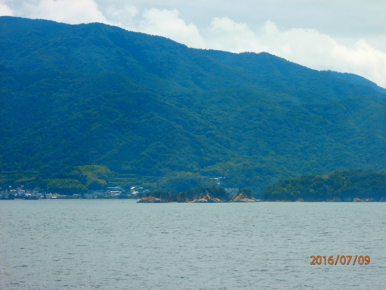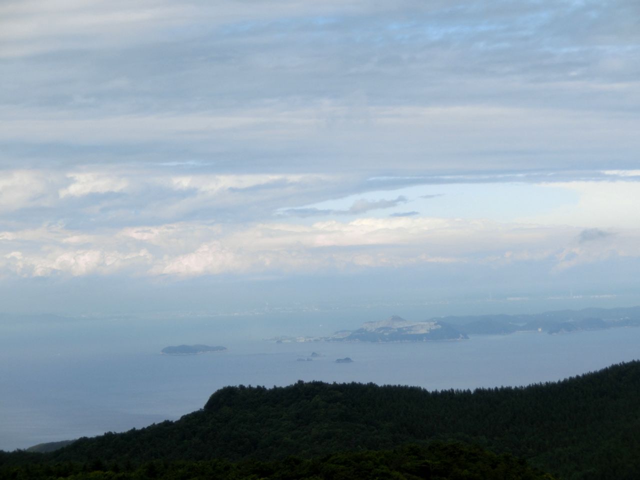 30分、一面、油が浮かんでいるような瀬戸内海の海の向こうに、小豆島の特徴と思われる断崖の岸を見ることが出来ました