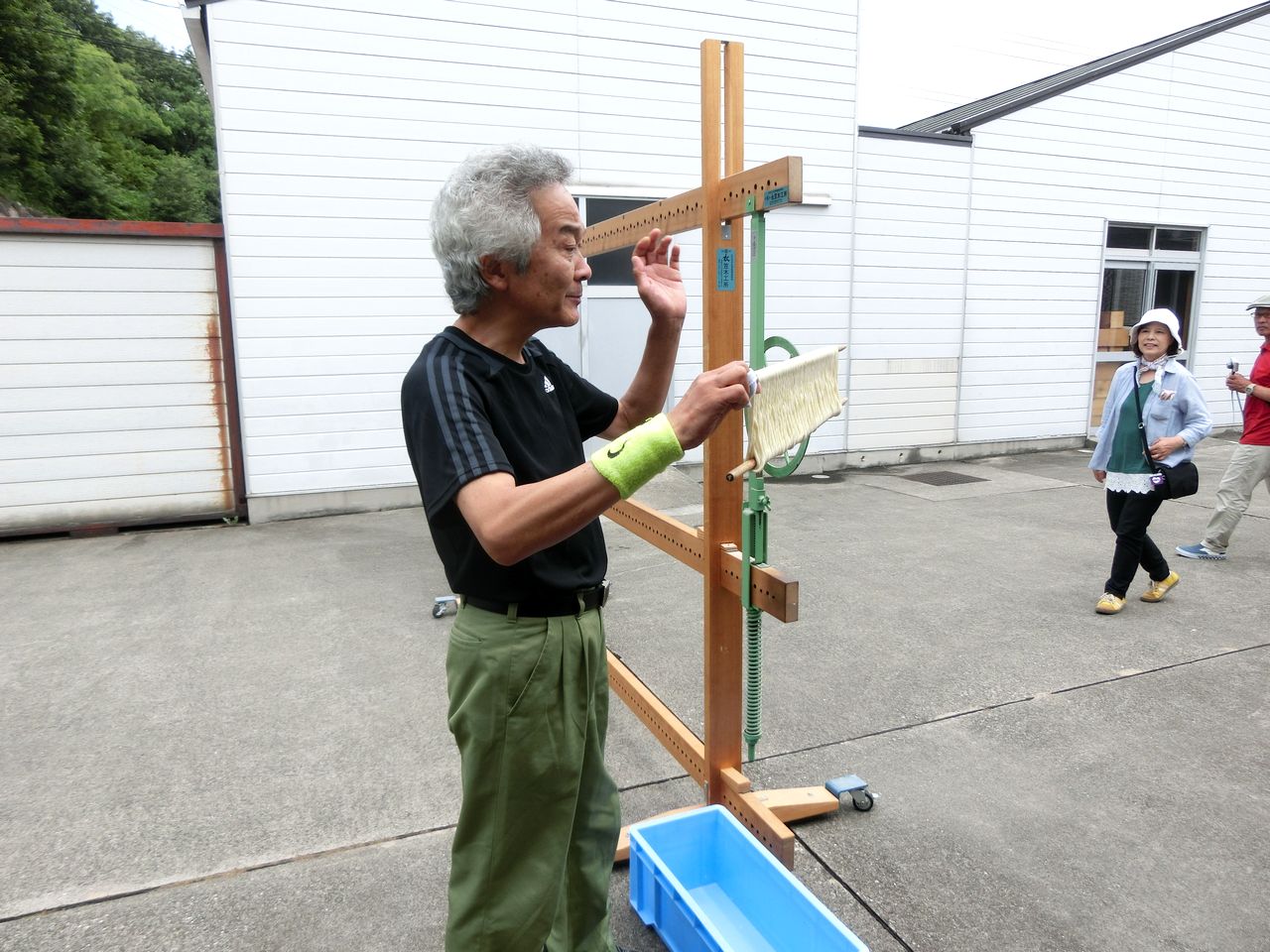 11時30分、「手延べソーメン館」で、ソーメンの手延べ作業(箸分け作業)を見学、試食をさせてもらいました
