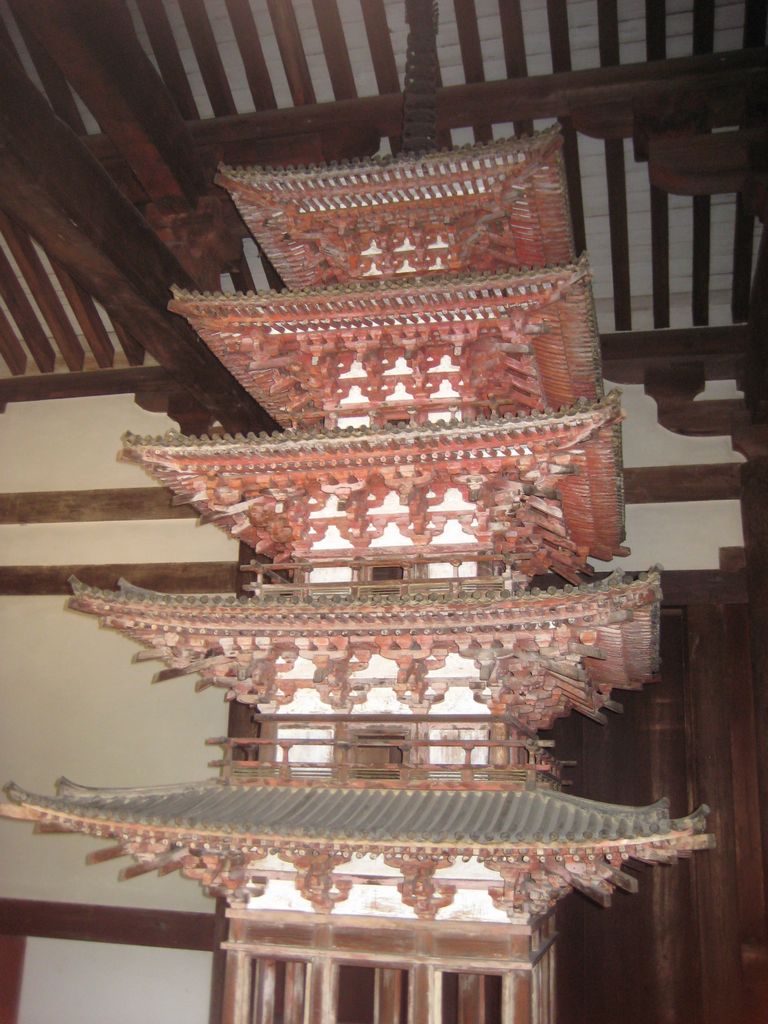 | 海龍王寺から道を西にとり、平城宮跡への道を進みます。平城宮跡遺構展示室で、第1次大極殿など各種復元模型を見学し、近鉄西大寺駅までの道の途中で、復元建造中の大極殿を写真におさめ、久しぶりの奈良ファミリーで昼食のお蕎麦、衣料品の買い物をして帰途につきました。久しぶりで楽しい散策でしたが、歩くのにはまだまだ日差しが暑すぎるお天気でした。 |