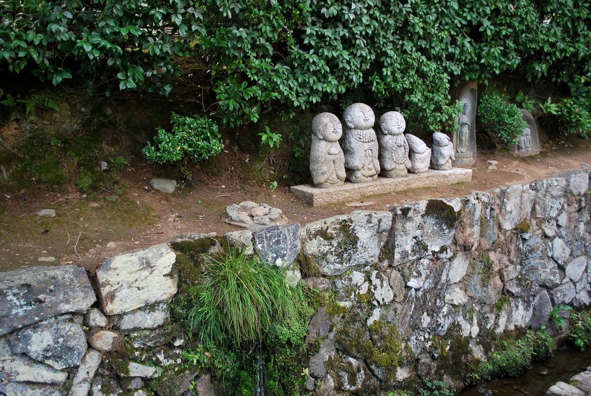 | 2012年8月16日 「京都五山の送り火」は毎年この日にしかありません。もちろん毎年お盆明けの8月16日です。 お天気については、懸けの要素の高い企画といえますが、ジジ連常任幹事Sさんが見つけてきてくれた「ぽけかる倶楽部」の企画イベント名は「京都を一望できる東山庭園より観覧!五山送り火観覧&鈴虫寺の説法、大河内山荘庭園見学」。大変興味深い企画です!!! 「ぽけかる倶楽部」は東京の会社で「お手軽日帰りツアー・体験イベント・日帰りバスツアー」などを主催していますが、関西では馴染みが無く、企画イベントも関西ではほとんど無い状況のようです。ちなみに、現在の関西での企画は「貴船・川床の夕食プラン」のみです。(WEB検索)良く見つけてきてくれたものとホント感心しています。有り難い事です。 「鈴虫寺」へ 同行お仲間のバスは5台。我々は3号車ということで、13時に京都駅八条口から西山山麓の「鈴虫寺」へ向け出発します。 約30分ほどで、「松室北河原町」バス停前の駐車場に着きます。ここで、「鈴虫寺」への地図を貰います。そして、ここがあの「苔寺(西芳寺)」への入口であることに気がつきました。「苔寺」への拝観が事前申し込みでない時に一度訪ねた記憶があります。大昔のことになります。 「鈴虫寺」への道を歩きます。 「苔寺」への分岐地点を過ぎて、 13時45分、「鈴虫寺」へ着きます。 お寺への上り口前には、茶店があり、お店の方が人待ち顔で佇んでいます。個人での参拝であれば、お蕎麦を頂戴できるのですが。 通称「鈴虫寺」は、正式には「妙徳山 華厳寺」。江戸時代中期の享保8年(1723)、華厳宗の再興のため鳳湛上人(ほうたんしょうにん)によって開かれ、現在は臨済宗に属する禅寺です。松尾山麓に位置し、京都市内を一望出来ます。「苔寺(西芳寺)」と同じで、お庭一面を苔が覆っており、木々や、竹林との調和が美しいお寺といえます。過去のご住職のご努力で一年中鈴虫の音色を聞くことが出来ることから、「鈴虫寺」の名前のほうが一般的になっています。 法話をお聞きする為に一般の方々とは別の道を上がります。10分程の待ち時間があり、撮影をしてみます。1) 2)木々の根元には苔が 3) 頭上を覆う楓の葉は秋の紅葉を想像させます。 御法話を拝聴できる時間がきます。 講話室に入り、準備されたお菓子とお茶を頂戴します。美味しい!!! 室内は鈴虫の為としょうするクーラーが適度の室温を保っています。室内は7000匹の「鈴虫」の音色に蔽われています。講話室は満室です。 御法話が始まります。その語りは「上方落語」を聞くような調子で始まります。冗談と悟りの為の法話が入り乱れて、笑いとともに仏様の教えを感ずることができます。「鈴虫説法」と呼ばれるこのお話しは、住職の桂 紹源師の独特のものでしょう。鈴虫の声を聞きながら、楽しませていただきました。 30分程の御法話が終わり、出口で「幸福の御守」を3守頂戴します。御法話の中にあった所作での、我が家3家族の「幸福地蔵」前でのお祈りの為です。 講話室の横を通り、お庭を拝見します。1) 業平竹の群れ 2) 黒竹の群れ 3) 斜面を利用したさながら生け花を思わせる1景 4) 庭越しに見える講話室 5) 見事な苔の群集 6) お庭の先から京都市内が一望されます。 山門脇の「幸福地蔵」です。 この地蔵さまは”草鞋”を履いておられます。 その御足のみを 我々の家まで私達の願いをかなえるために歩いてきてくださる慈悲深い一願成就のお地蔵様です。従って、お願いのお祈りの時には必ず「住所、氏名」が必要とのことです。 時間が迫っています。急ぎ足でバス停に向います。15時、バスの集合時間にギリギリセーフ。 |