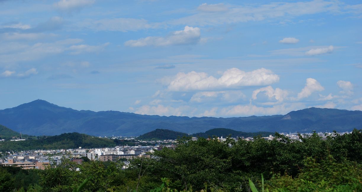![]() 東山如意ヶ嶽中腹には大文字焼きの為の大きな敷地が。 |