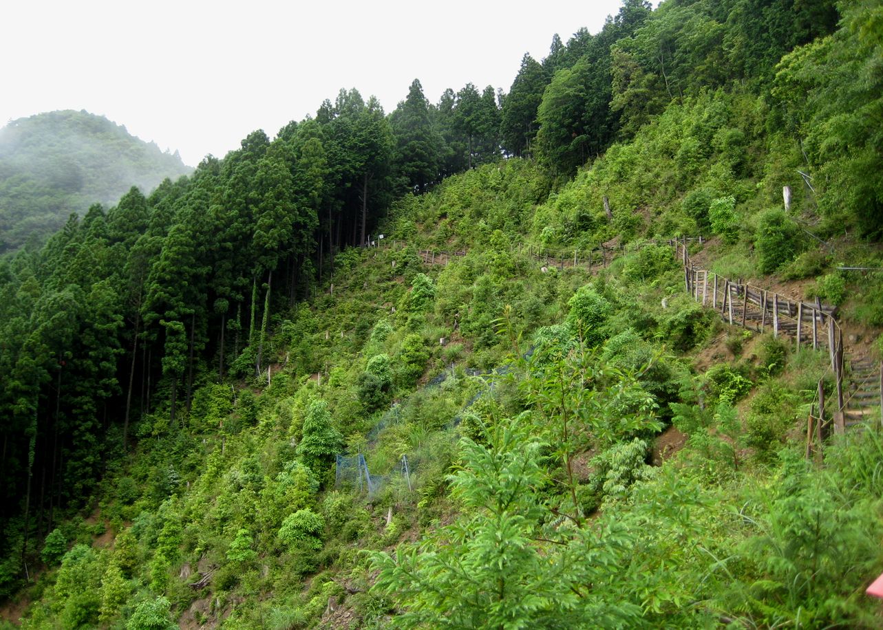 ![]() 岩上峠への登り道。こんな道が1時間続きます。 |