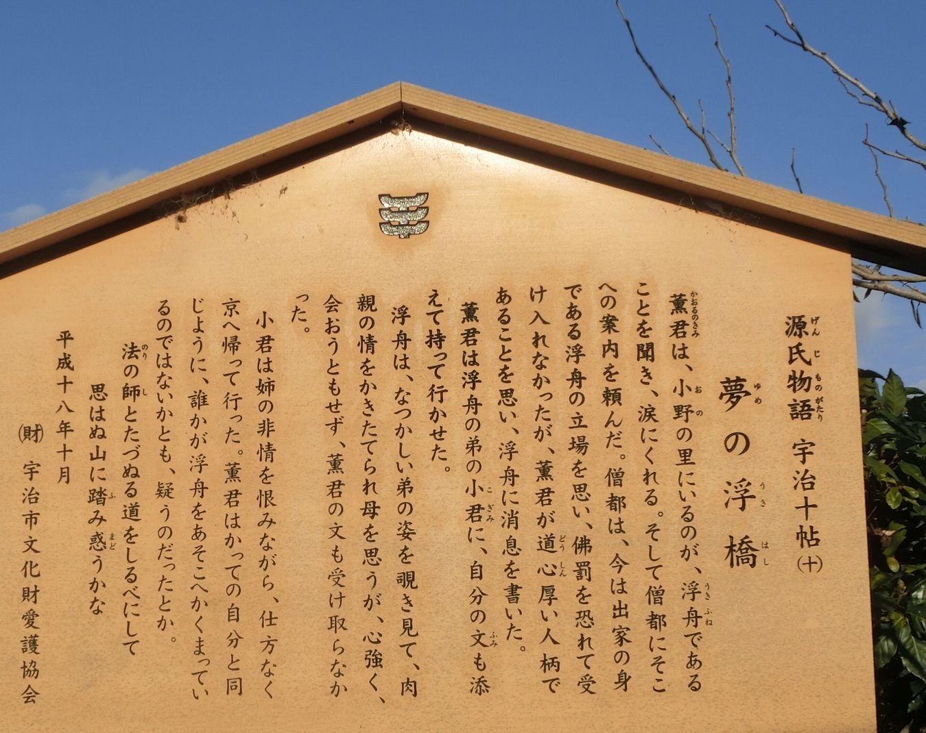 | 2019年元旦 新年の朝、例年の通りテレビで富士山の御来光を拝みました。 1) 2) 3) 好天に恵まれ、朝から初詣に出かけました。まず、去年の縁起物の矢を近所の鎮守さん「大住(月読隼人)神社」(毎年10月14日には 『大住隼人舞』が奉納されます)へお返し、今年の恵方(東北東)を考え、久しぶりに宇治の「平等院鳳凰堂」・「宇治上神社」へお詣りに行くこととしました。 JRでJR木津駅を経由してJR宇治駅へ向かいました。12時半には宇治駅に到着し、「平等院」へ向かいました。 目的地の地図です。 12時40分、「平等院」前に到着しました。 何年かぶりの「平等院鳳凰堂」です。(お詣りの後テレビで平等院の池の水を新工夫できれいな水になっていることを知りました) 「鳳凰堂」と池を一周して、撮影していきます。 1) 2) 3)阿弥陀如来のお顔です。 ( 4 ) 5) 6) 7) 8) 9) 「ミュージアム鳳凰館」はゆっくりと鑑賞しました。充実した展示品(鳳凰堂内部の「雲中供養菩薩像」の半数の展示)があり、満足な鑑賞でした。 宇治川に掛かる「宇治橋」まで戻りました。 橋の手前には「紫式部像」が置かれています。 式部像です。 「源氏物語・宇治十条」の解説版です。 宇治川を渡り、「宇治上神社」に向かいました。 「宇治上神社」へ 宇治上神社でお詣りしました。神社は国宝です。 宇治川を渡り、帰りは京阪電車で樟葉駅に戻ります。樟葉駅からはバスです。 |