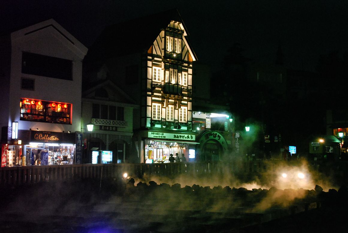 | 草津温泉 吹割の滝を堪能したあと、バスは沼田、中之条、長野原を通り、高原地帯へ上ります。リゾート施設やホテルが点々と見える高原を走ると、すぐに駐車場へ到着。硫黄の温泉の匂いが心地良く感じられます。ホテルの小さいバスに乗り換え、ほんの数分で「ホテルみゆき」さんに到着。温泉場はホント高原地帯の真ん中(標高1156M)に存在してました。夕食まで1時間以上の時間があり、草津名物の湯畑へ散策に出かけます。ホテルの下駄を借り、両側は飲食店が並ぶ温泉情緒たっぷりの坂道を下ると暮れなずんでライトアップされた湯畑に到着。その周りをゆっくりと1周。草津を訪れたとされる歴史上の人物名をなぞりながら、この情緒を記録に残したいとカメラのシャッターを押しました。湯畑の夜景です。 1) 2) 3) 草津長寿庵さんはホテルの行きと帰りに温泉饅頭をご馳走になりました。翌朝はお饅頭を少しだけ買わせてもらいました。 湯畑の近くに無料ですが小奇麗な草津の温泉場(白旗の湯など)がありましたが、ホテルに帰りすぐにお風呂に直行。少し熱めですが、ホントこれぞ温泉といった感じのねっとりしたお湯加減を満喫!!! |
