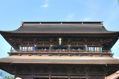 | 善光寺バス駐車場には12時半ころに到着。善光寺・大勧進・常智院さん(永代宿坊)のご案内で参拝します。大勧進本堂万善堂での講話での後、嫁さんは先祖と両親の供養のお願いをしました。パス出発時にはその旨のお札等を頂くことができました。小生は寸志でしたので、それなりでした。 善光寺は、天台宗と浄土宗の別格本山となっています。(日本において仏教が諸宗派に分かれる以前からの寺院であることから、宗派の別なく宿願が可能な霊場と位置づけられています。)天台宗の大勧進と25院、浄土宗の大本願と14坊により運営されています。大勧進の住職は「御貫主」と呼ばれ、天台宗の名刹から推挙された僧侶が歴代住職をつとめています。大本願はこの手の大寺院には珍しい尼寺で、門跡寺院ではありませんが、代々公家出身者から住職(大本願では「上人」という)を迎えています。現在は鷹司誓玉が121世法主となっています。(以上、ウィキペディアより)と言うことで、さらに本堂でのお話をお聞きし、自由散策の折、自分へのお土産として、八幡屋磯五朗店で善光寺七味唐辛子を買いもとめ、仁王門 山門 再度本堂を回りました。 |